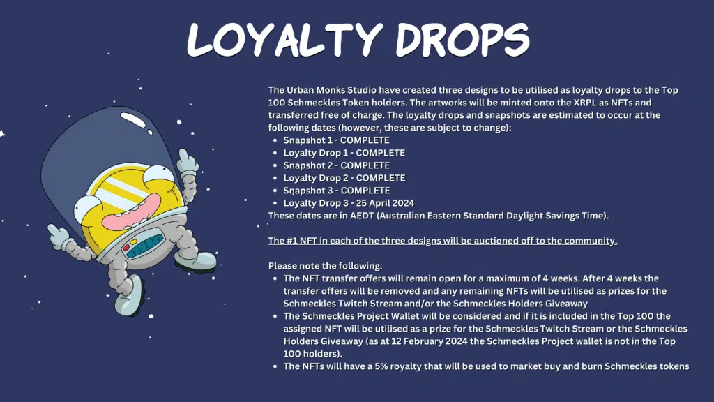 The wallets below are those that qualified for Loyalty Drop 3 by being Top 100 Schmeckles holders on 18 April 2024 (AEDT).